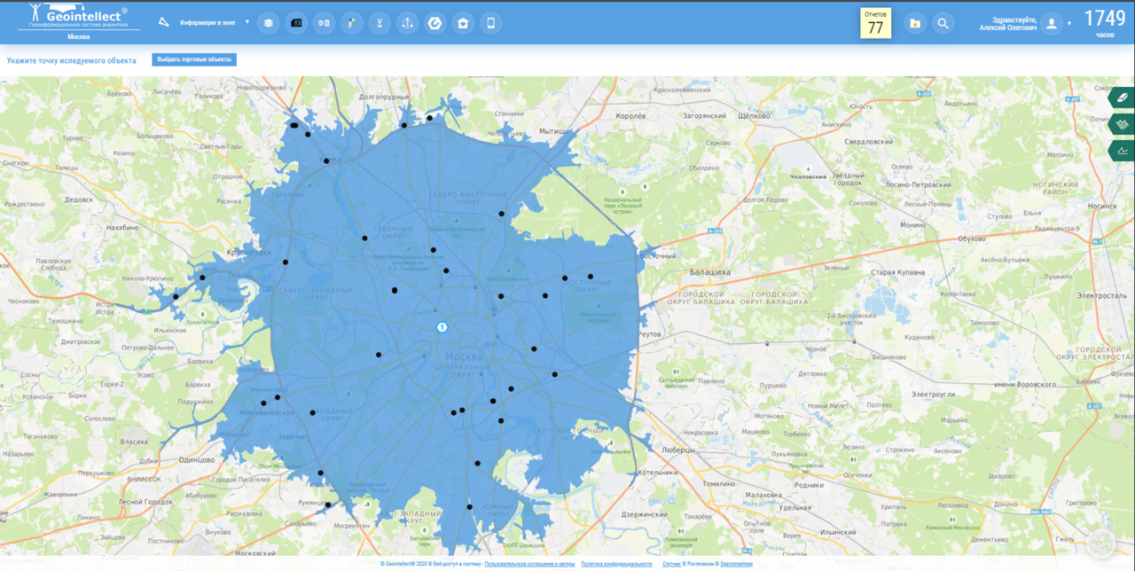 - На основе данных Geointellect формируются зоны охвата для каждого объекта