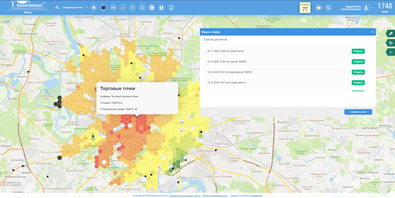 Что делает: Модуль построения модели Хаффа в Geointellect — это инструмент геомаркетингового моделирования, который позволяет оценивать конкурентную привлекательность торговых объектов (например, магазинов, кинотеатров или ТЦ) и прогнозировать поведение потребителей на основе пространственного анализа.