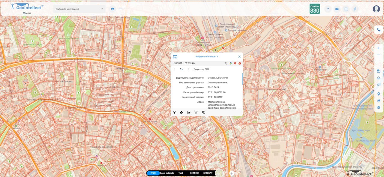 Что делает: Отображает официальные границы земельных участков из Росреестра. Зачем нужен: Для оценки правового статуса земли, планирования строительства, покупки или аренды участка. Пример использования: Планируете ТЦ — смотрите, какие участки свободны, узнаёте кадастровый номер и проверяете данные на Публичной кадастровой карте.