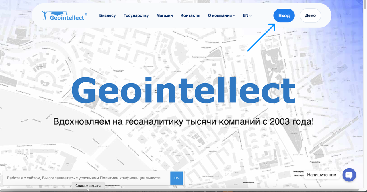 - Перейдите на сайт Откройте в браузере сайт: https://geointellect.com (рис 1)