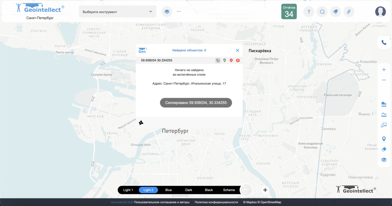 Копировать координаты точки — быстрый доступ к нужному месту Инструмент позволяет скопировать координаты выбранной точки на карте всего за один клик. Это удобно для передачи данных в мессенджерах, сохранения в заметках или переноса в другие системы.