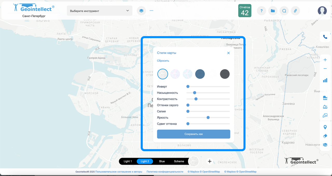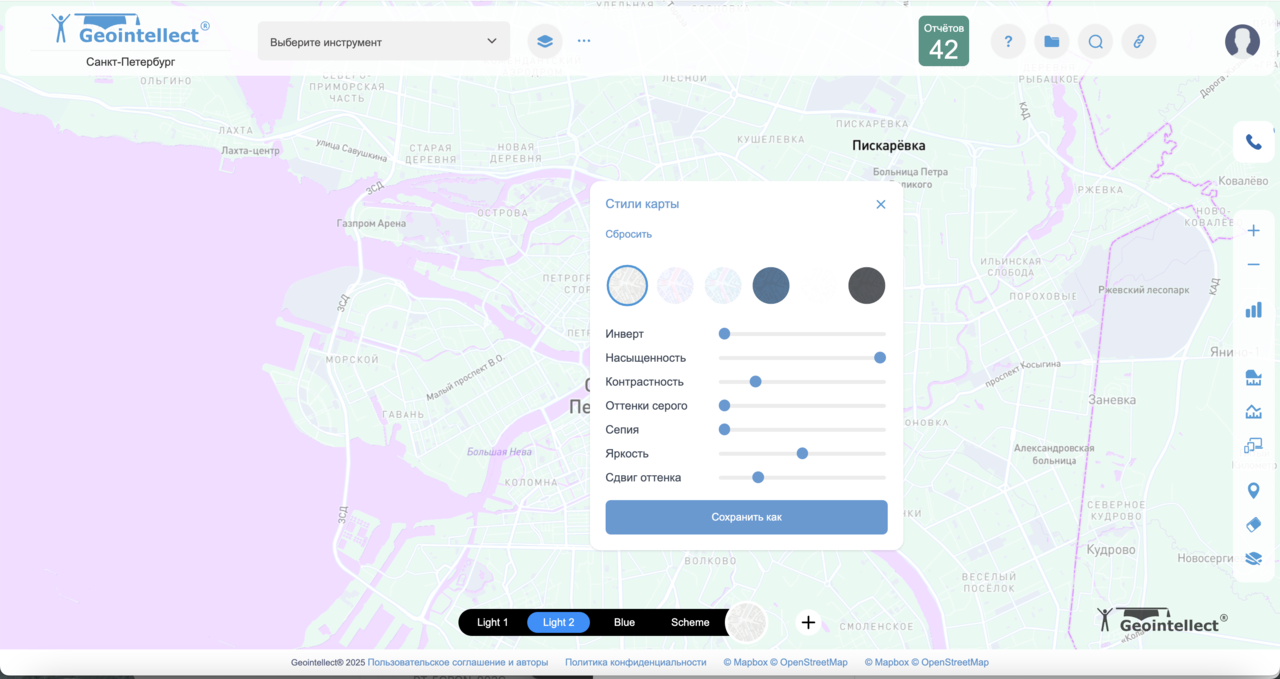 • Настроенный вид карты автоматически используется в отчётах и презентациях.