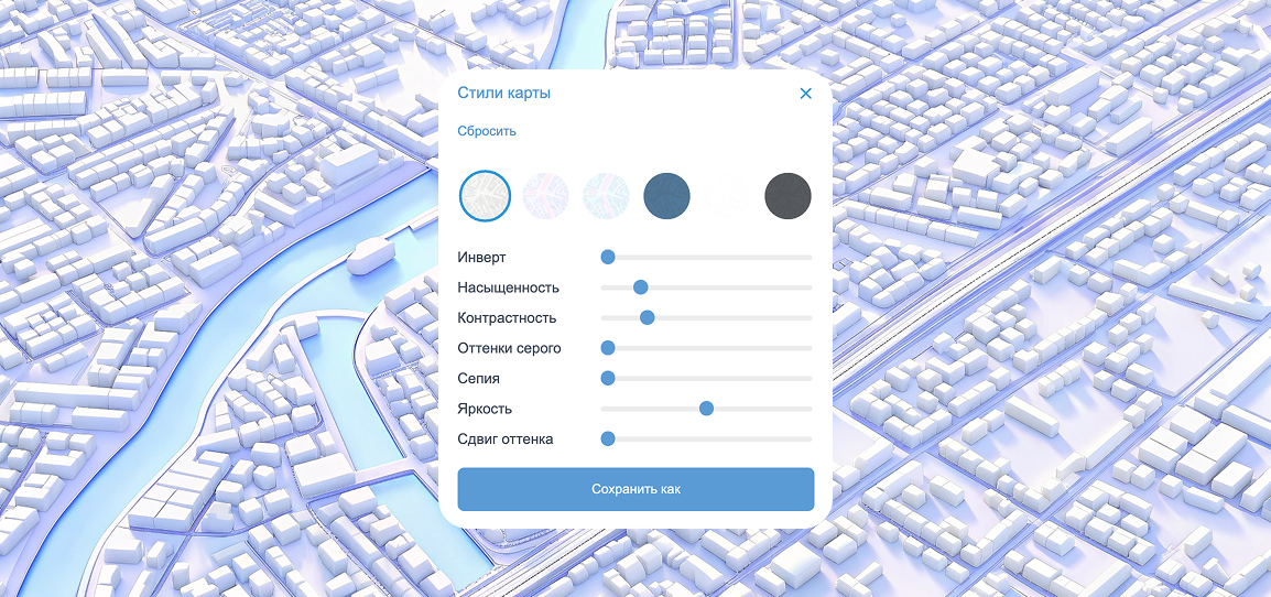 После нажатия на иконку карандаша появится окно редактора. В нём доступны ползунки, позволяющие гибко управлять стилем карты: