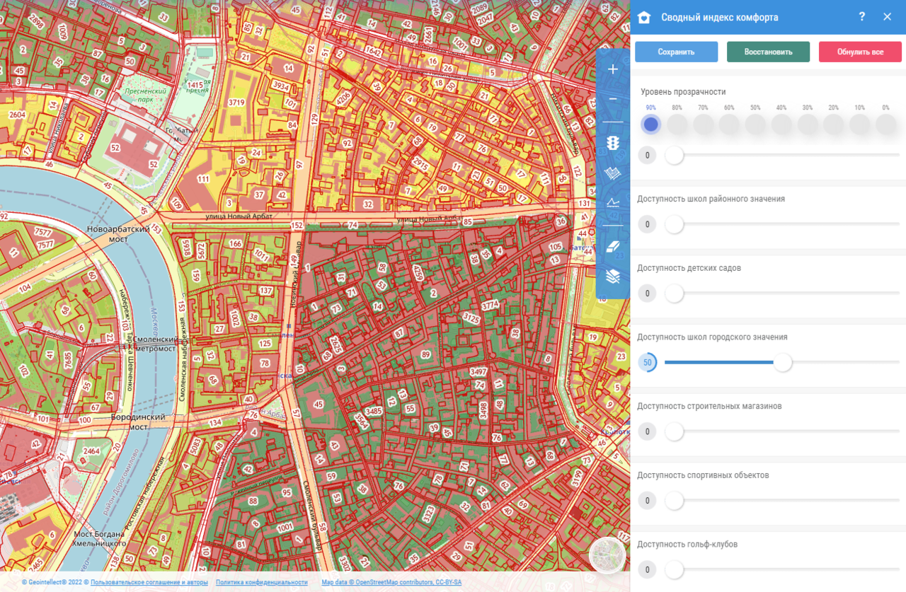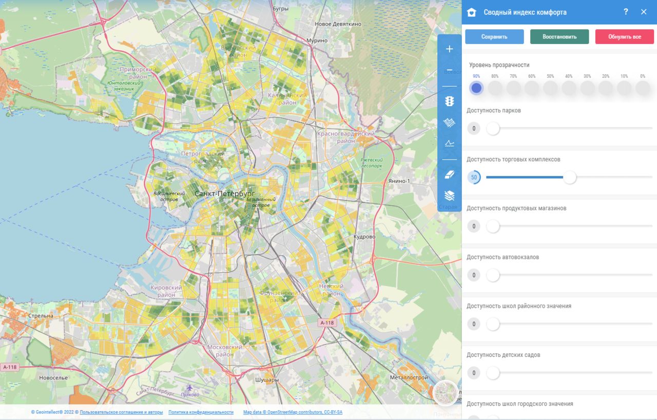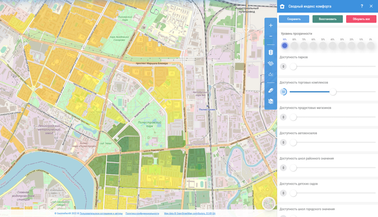 Процессы урбанизации и концентрации населения требуют постоянного отслеживания качества городской среды, ее модернизации и подстраивания под реалии. Поэтому для геоаналитики задача оценки комфортности, решаемая Geointellect.Urban, не перестает быть актуальной.