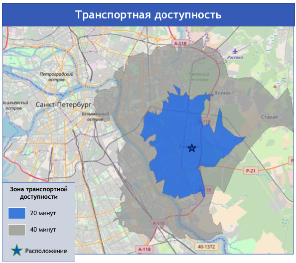 Зона пересечения транспортной доступности ТРК «Радуга» и ТК «Питер»
