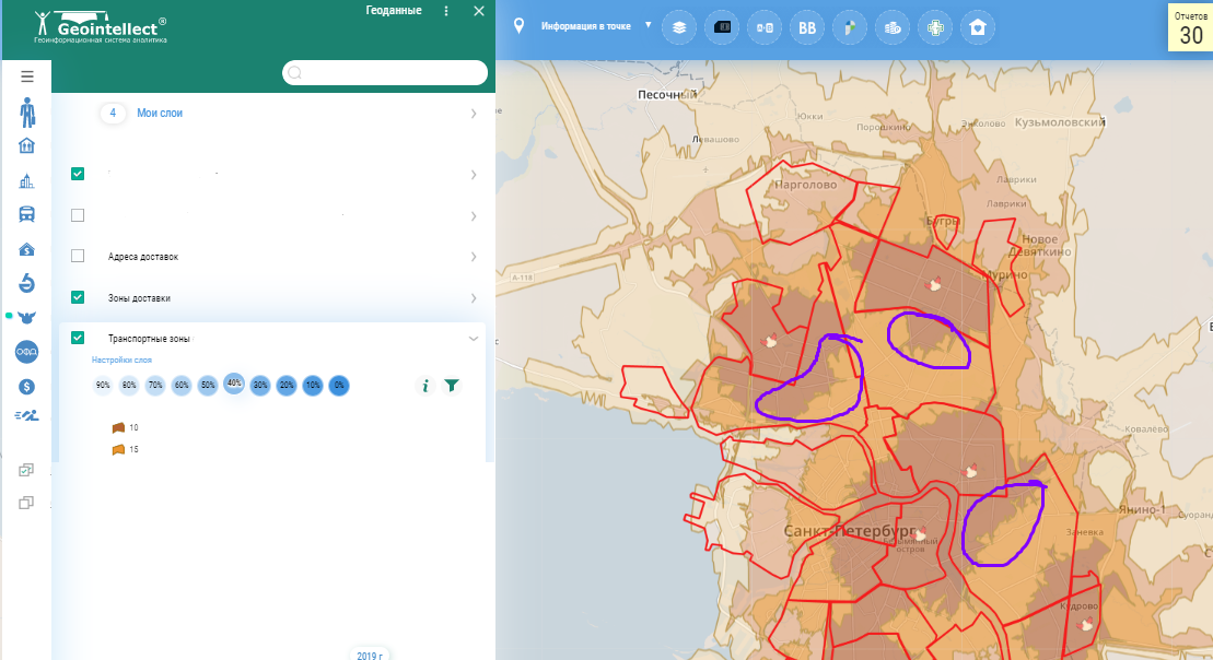 - Загружаем их в Геоинтеллект и проводим детальную аналитику.
