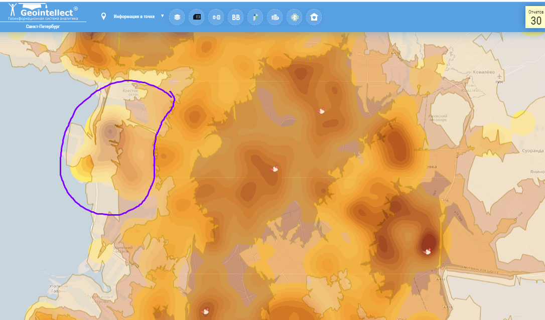 Итог: вы увидите потенциально перспективные районы, где высокий спрос, мало конкурентов и хороший доступ.